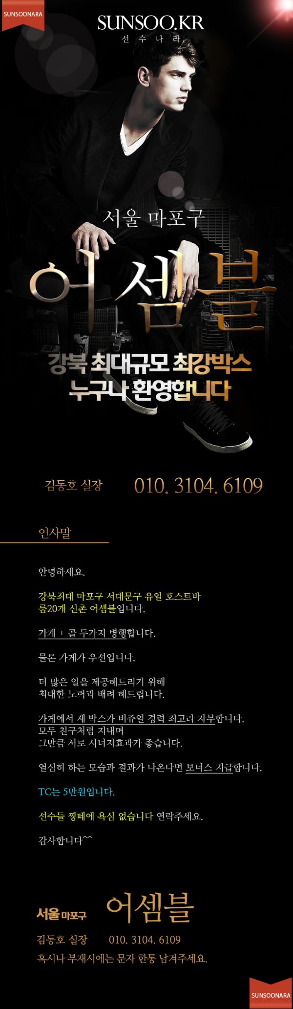 호스트빠 호빠 호스트빠 서울-서대문구 지역 마포 어셈블 - 강북 최대 규모, 최강 박스! 누구나 환영합니다 | 선수나라 - 호빠나라 호빠선수 구인구직 1위
